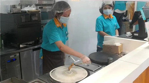 去年8月27日,上海逸刻新零售網(wǎng)絡(luò)科技有限公司北京西路店的許可證完成變更,主體業(yè)態(tài)一欄新增“餐飲服務(wù)經(jīng)營(yíng)者(全部使用半成品加工)”,店內(nèi)新增兩個(gè)煎餅臺(tái)、一塊炒飯鐵板和一臺(tái)炸品機(jī),煎餅果子、蛋炒飯……現(xiàn)場(chǎng)制作加工的熱食增加了五六十款,讓吃慣了微波爐加熱三明治的上班族紛紛聞香而來(lái)。
