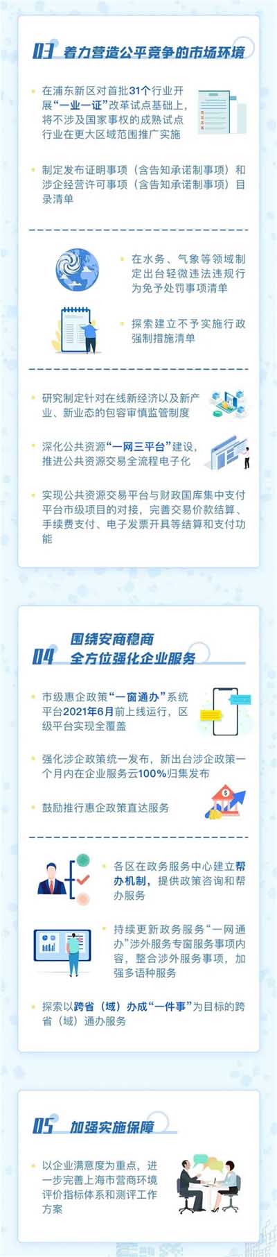 《上海市加強(qiáng)改革系統(tǒng)集成 持續(xù)深化國際一流營商環(huán)境建設(shè)行動方案》今天正式公布,圍繞優(yōu)化政務(wù)環(huán)境、提升企業(yè)全生命周期管理服務(wù)、營造公平競爭市場環(huán)境等5方面提出31項任務(wù),共207條舉措。《行動方案》提出:實現(xiàn)政務(wù)服務(wù)可網(wǎng)辦能力達(dá)到95%以上,“最多跑一次”事項范圍由企業(yè)間不動產(chǎn)轉(zhuǎn)移登記擴(kuò)展到所有不動產(chǎn)登記......圖解詳見下文↓